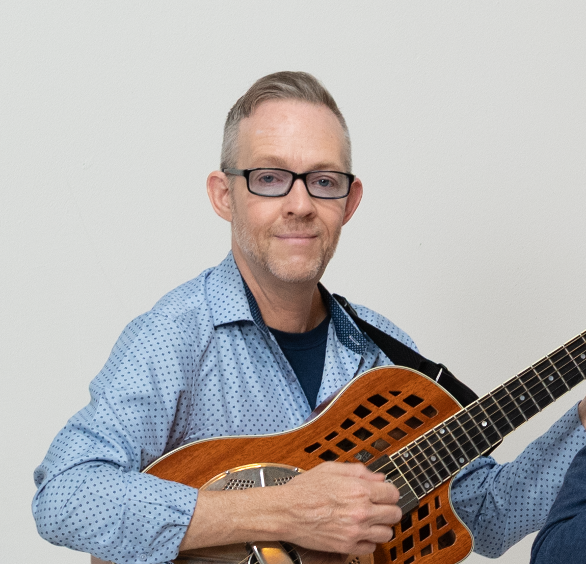 Troy grew up performing alongside his sister Sharon Gilchrist, and later went on to play with names such as Rachel Goetz, Milo Deering, Jeff Scroggins, and more. Troy plays with a unique style of finger and plucking techniques, preferring resonator guitars over traditional D-28 Martins even in bluegrass settings much to the chagrin of the bluegrass police.